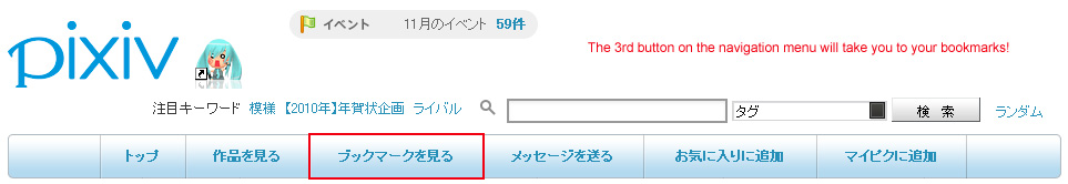 (Oh yeah, in case you were wondering; you can access your bookmarks anytime from the 3rd link on the navigation bar from your homepage. The URL will be http://www.pixiv.net/bookmark.php.)