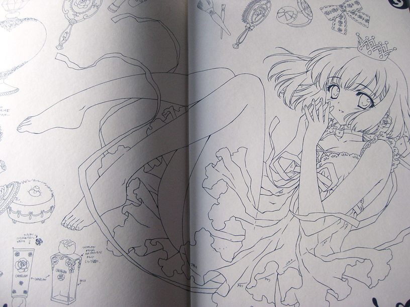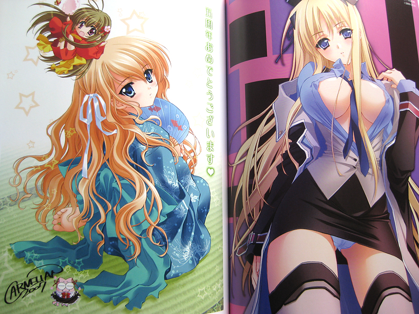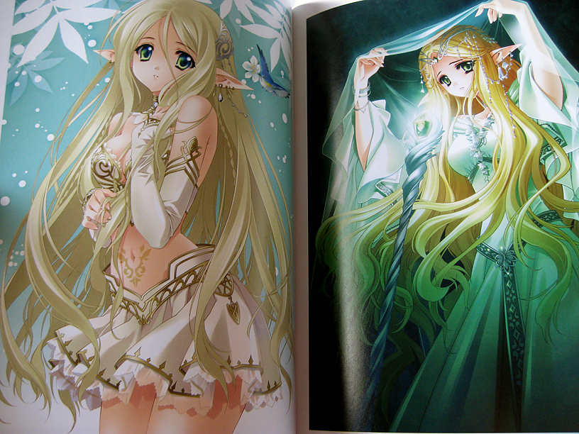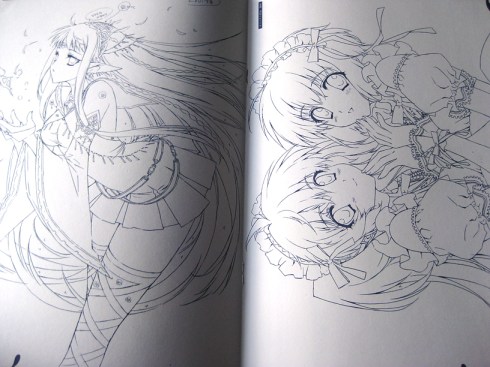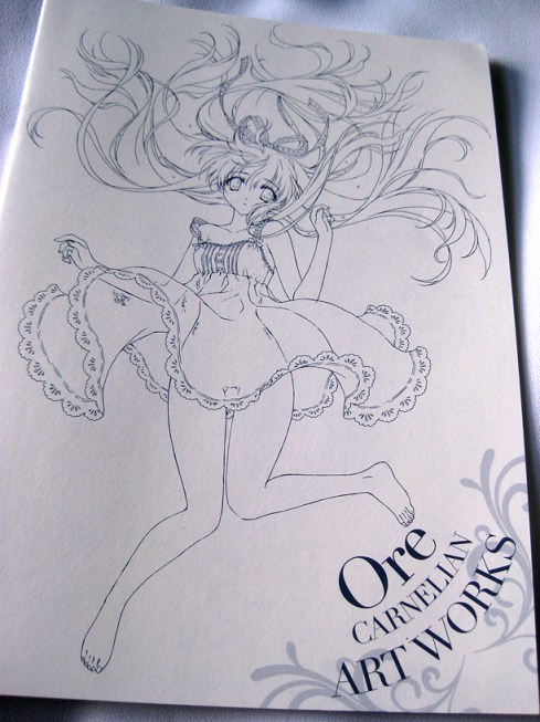 This book is a must-get if you’re a Carnelian fan. If you haven’t been able to afford her full color BENIGYOKUZUI doujinshi, there’s a few of them in here (I didn’t photograph those), along with “The Sanctuary Knocker”, tons of promotional illustrations and a bunch of her light novel cover illustrations that you are hard-pressed to find anywhere else. (I didn’t even get to the light novel covers when I was taking photographs, but if you’re wondering, they’re primarily from the MiX! novels.)