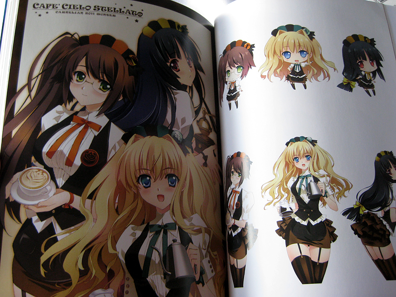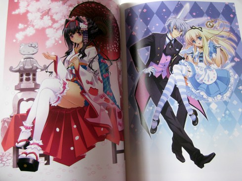 I’m not familiar with many eroge artists, but I love her Hello Kitty kimono illustration and the Alice in Wonderland flyer one, especially! Also, those coffee girls are pretty darn cute, too. I really like the chibi versions :D