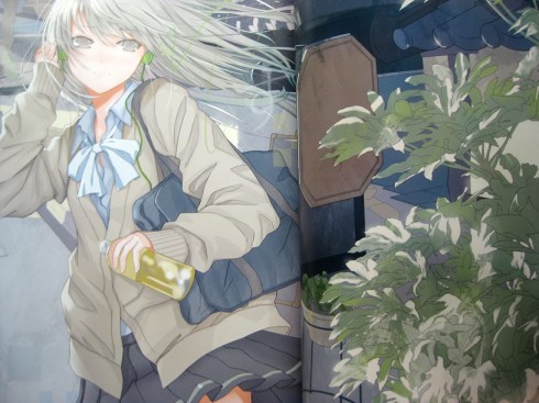 The end of the book features some gorgeous full color comics. The title pitured is フォントマスター (Font Master), originally published in Gelatin magazine for Spring of 2010. There’s also another comic after it called 水彩少女 (Suisai Shoujo), which uses a much darker color palette, but is just as beautiful.