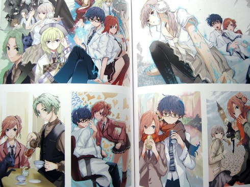 These are all artworks done for the covers of a light novel series called 放課後の魔術師 (Houkago no Majutsushi) or “After School Magicians”.