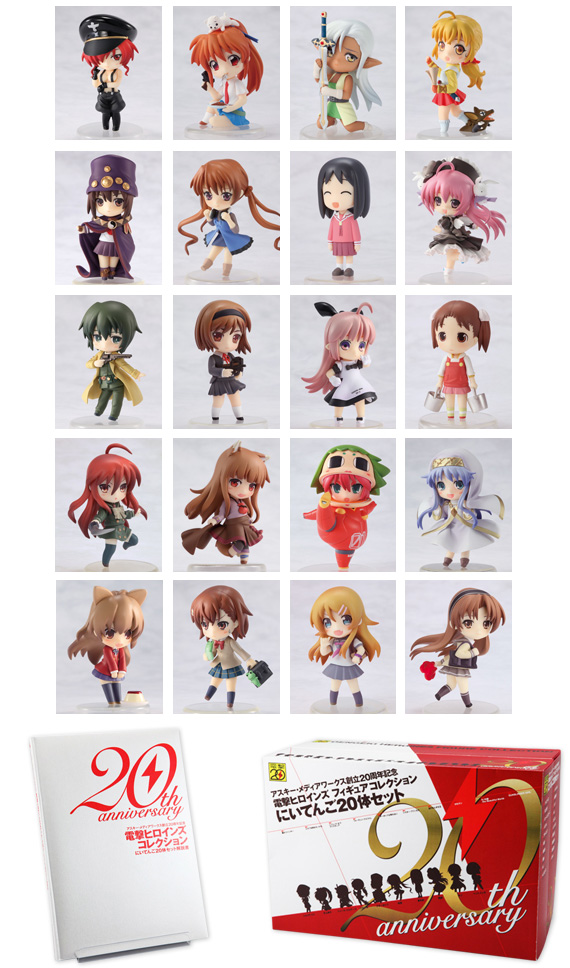 Exclusive to Dengekiya’s online shop, The Ascii Media Works 20th Anniversary Dengeki Heroines Figure Collection is a set of 20 miniature figurines, manufactured by Toy’s Works to celebrate 20 years of Ascii Media Works with 20 of anime’s most beloved heroines.