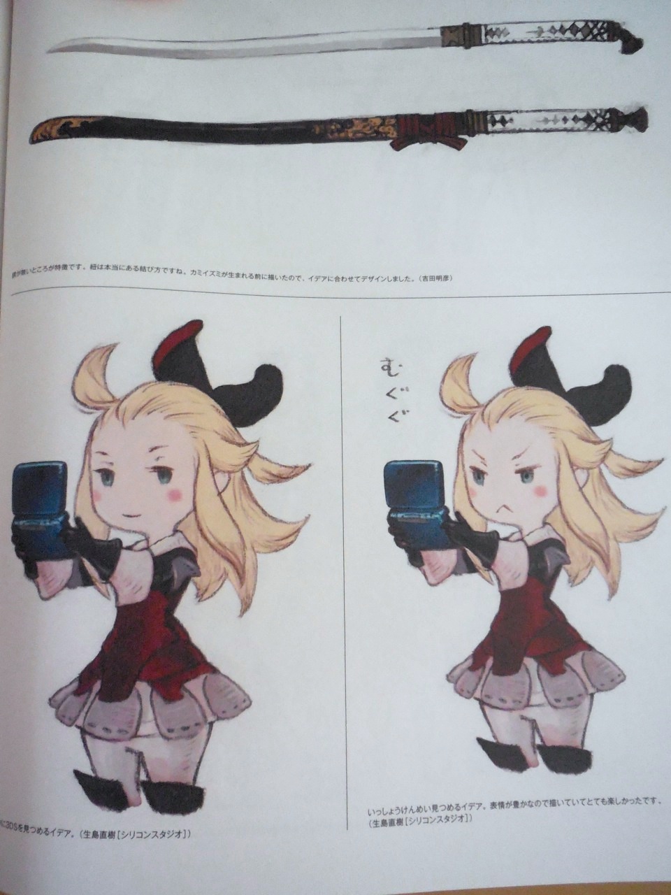 As mentioned before, there’s even a small portion of the book dedicated to Finaly Fantasy: The 4 Heroes of Light! You can really see the similarities between it and Bravely Default when looking at these job sketches.