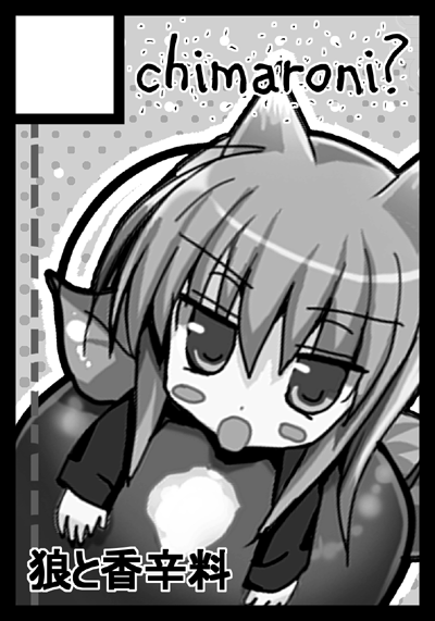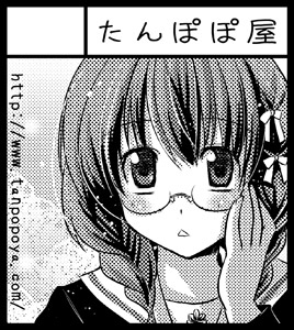 Screentones work well for circle cuts due to the black and white limitation, as you will see here in Chisato Naruse‘s advertisement for COMITIA90. You’ll notice that this particular cut is of different dimensions than one made for a Comic Market catalog.