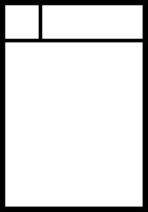 There’s a few different templates for making circle cuts. The most common one has a small blank “checkbox” in the upper left and to the right of it a box to put your circle name. The large portion below is where you put a piece of artwork and some text announcing your new doujinshi to be sold at the convention, or simply the URL of your website. Circle cuts need to be in black and white or greyscale for printing in the catalog. Many artists design them in Photoshop but some also draw them by hand. The hand-drawn ones often look amateurish, but they have a certain charm to them. This is the typical circle cut template: