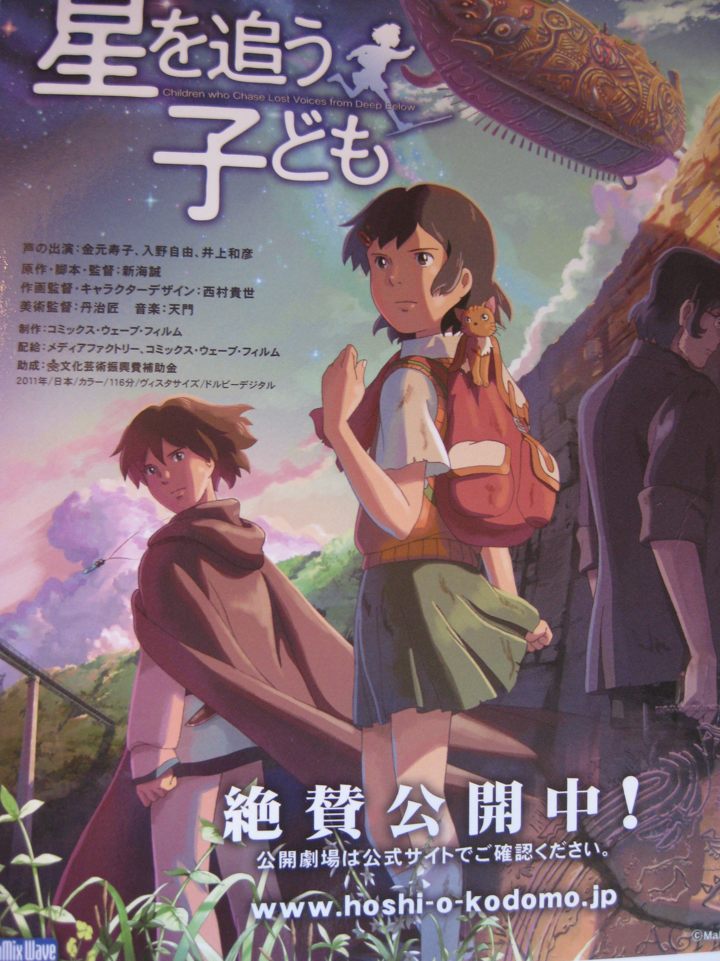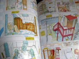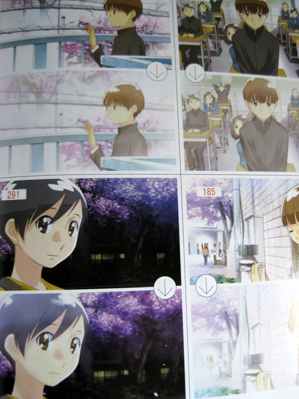 Shinkai manages to bring out the magic hidden in normal everyday settings. He is a master in his usage of color and light. In addition to this 2-page spread of settings, there’s quite a few gorgeous screenshots from his newest work 星を追う子ども (Hoshi wo Ou Kodomo). Unfortunately, my photos couldn’t do them justice, so they are not included here.