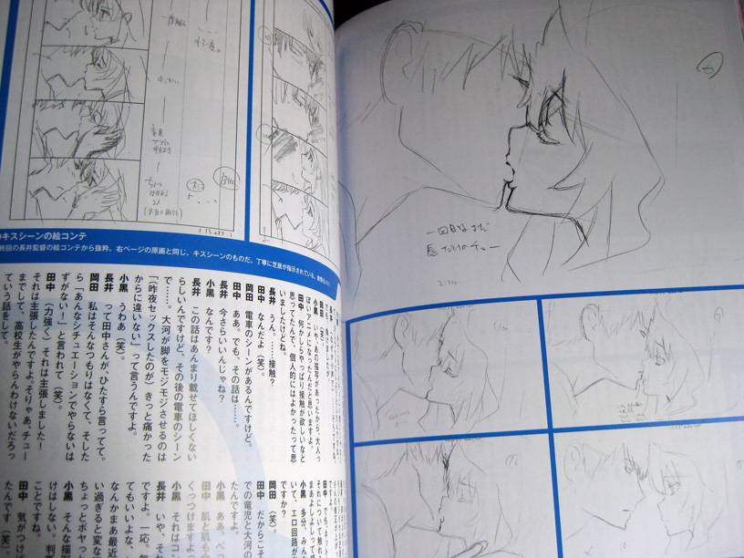 Here we have pencil drawings of Toradora’s precious kiss scene. Seeing production art like this makes you realize the effort and delicacy with which these extremely important scenes are constructed. These scenes are normally drawn by what’s known as the “key” animator, who sets the standard of how each character should be drawn and animated.